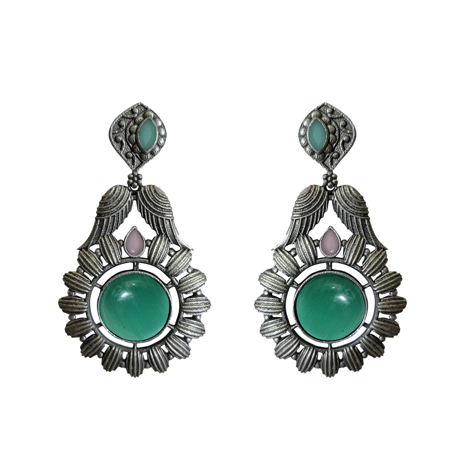 Rosegold Plated AD Studded Mint Stone Fancy Earrings Cubic Zirconia Alloy Drops & Danglers